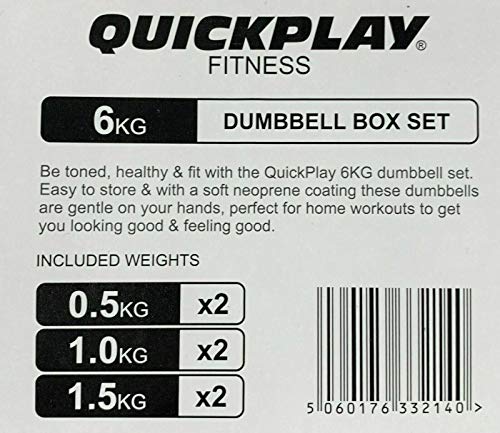 Details: Be Toned, Healthy And Fit With The 6kg Dumbbell Set Easy To Store And With A Soft Neoprene Coating These Dumbbells Are Gentle On Your Hands Perfect For Home Work Out To Get You Looking Good And Feeling Good Size: 2 X 0.5kg 2 X 1.0kg 2 X 1.5kg Comes In Carry Case