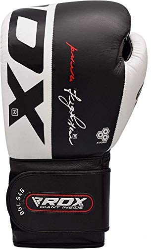 RDX Boxing Gloves Training Sparring Punching Glove Cow Hide Leather Muay Thai Fighting Bag Mitts kickboxing, Black/White, 14 oz